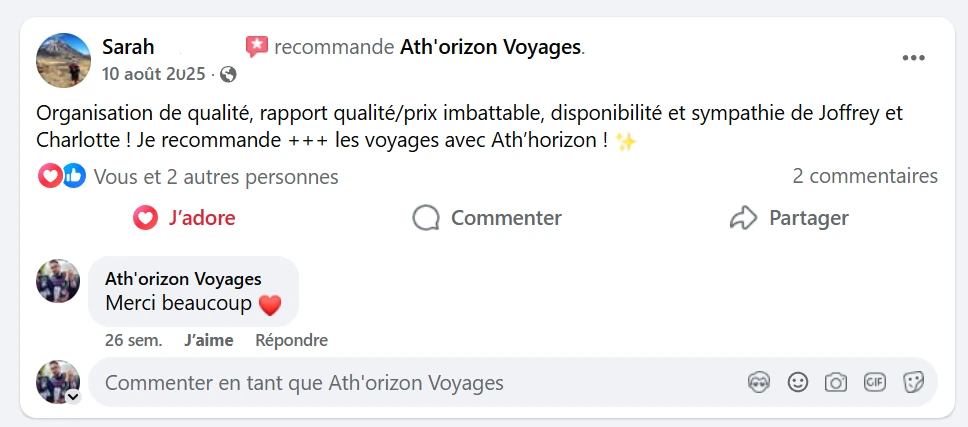 Un accompagnement humain, des conseils issus de l’expérience vécue, une organisation pensée dans le détail et une relation directe avec un passionné qui connaît ses partenaires et ses destinations.